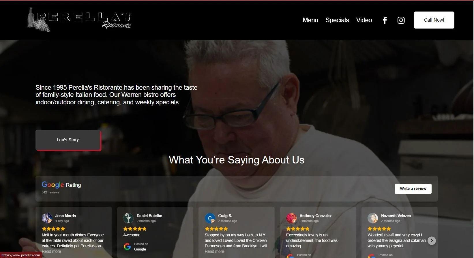 Perella's Ristorante, a multigenerational oasis of excellent food from the heart, was revitalized by Lou in 2018, including an interior redesign featured on Restaurant Impossible. The project encompassed a mobile-first website, logo update, SEO, local digital marketing, social media management, professional photography, and a menu redesign to align with the family-focused and minimalistic European bistro style.